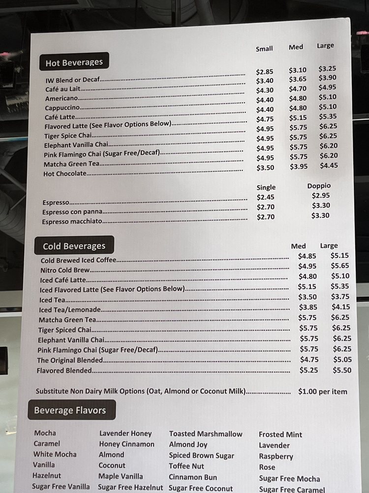 IW Coffee- Indian Wells Menu (2025 Update)